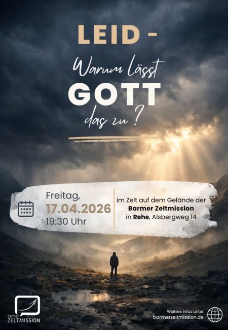 Bereits am Freitag, den 17.04.2026, laden wir herzlich zu einem Vortragsabend im Zelt an den Hallen der Barmer Zeltmission in Rehe ein.